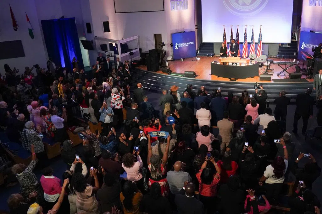 JONESBORO, Ga. (AP) — Kamala Harris on Sunday summoned Black churchgoers to turn out at the polls and got a big assist from music legend Stevie Wonder, who rallied congregants with a rendition of Bob Marley’s “Redemption Song.”
