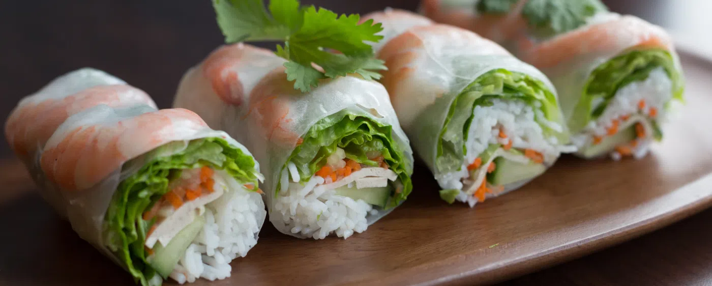 - Roll the left side over the shrimp, then roll tightly until sealed.