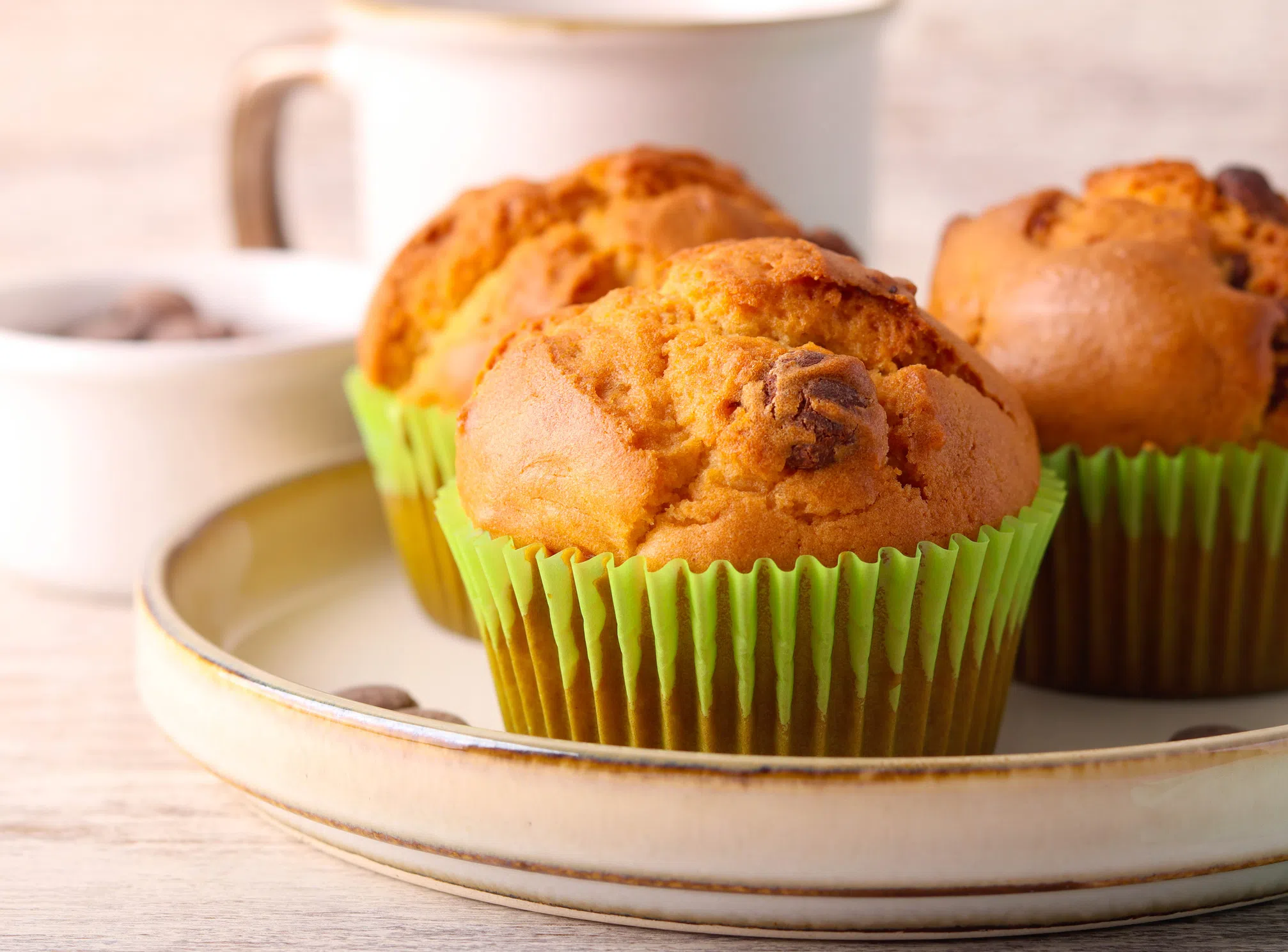 - Add flour mixture; mix on low speed until about 75% of flour is incorporated. Use a spatula to stir in chocolate chips, and to fully incorporate flour. Divide batter evenly between prepared muffin cups.