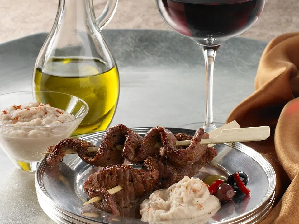 Beef Skewers with Garlicky White Bean Dip Recipe from Beef It’s What’s For Dinner