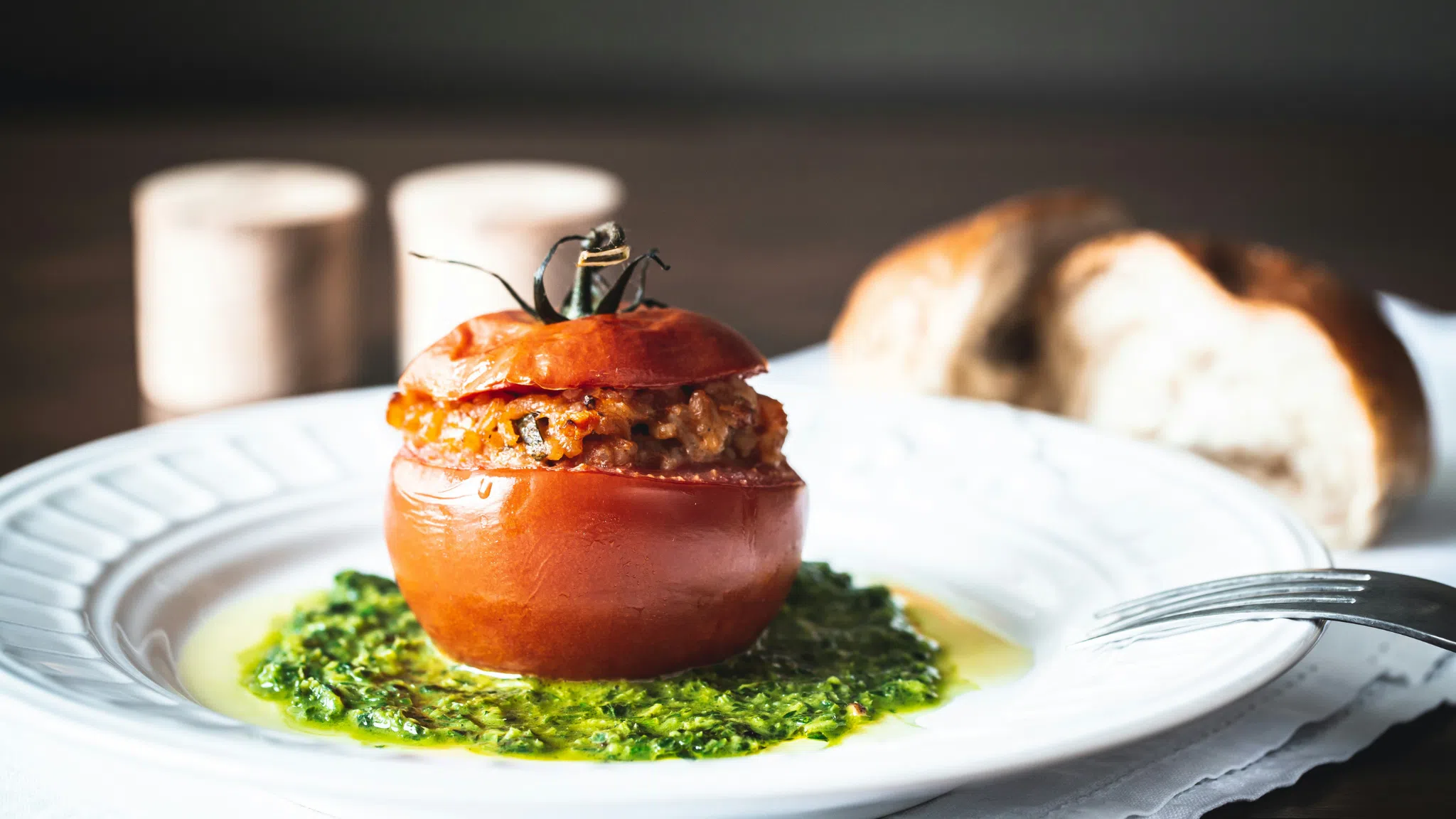 3. Stuff the tomatoesPlace the hollowed tomatoes upright in a lightly greased baking dish. Spoon the filling generously into each tomato, gently pressing it down so they’re well packed.
