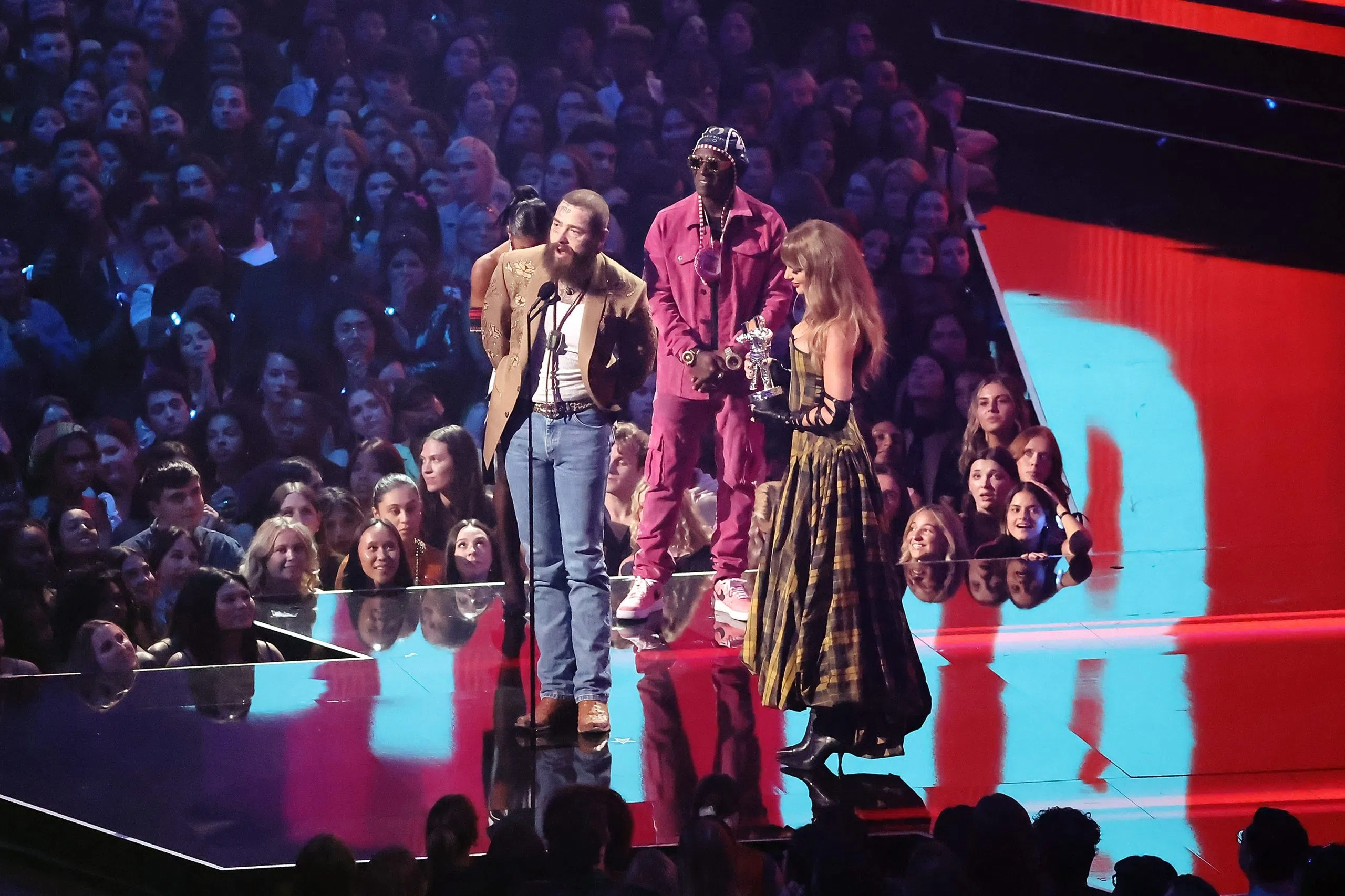 Taylor Swift and Post Malone took home the first award of the 2024 MTV Video Music Awards for best collaboration, handed to them by Flavor Flav and Olympian Jordan Chiles.