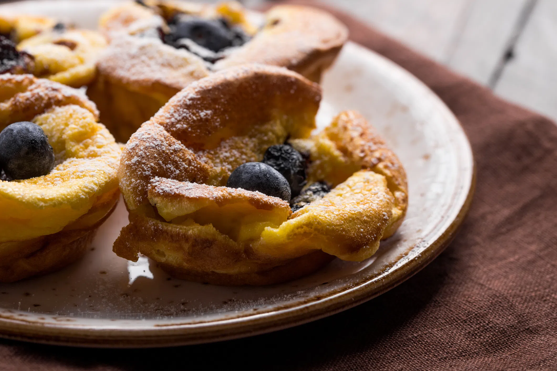 - Gently lift popovers from their mold and place on a serving dish. Pierce the center with a fork to release some steam and prevent sogginess. Add a light dusting of confectioner sugar on top and enjoy immediately!