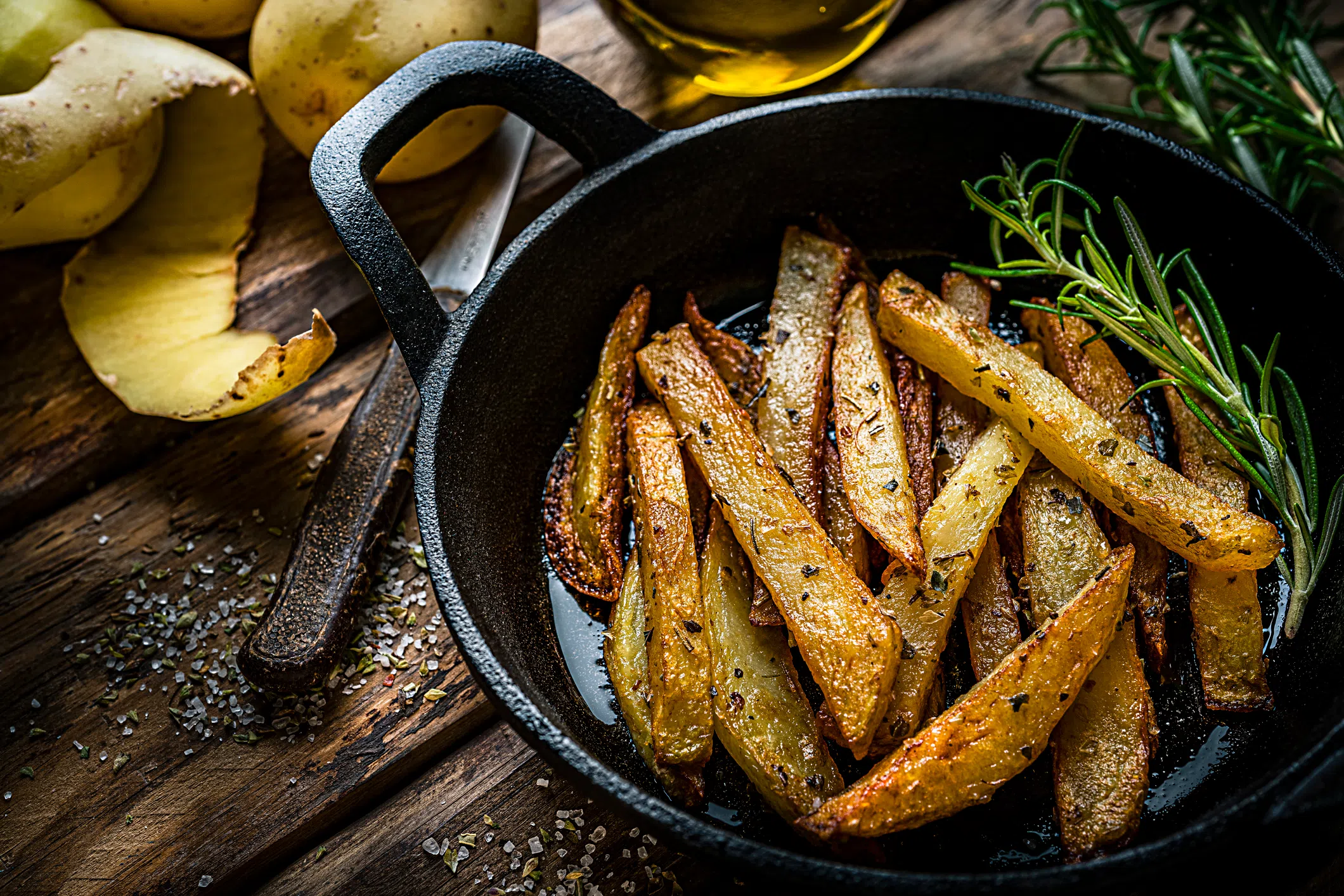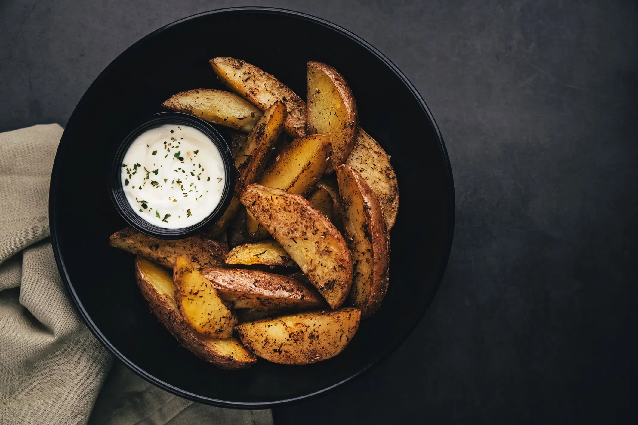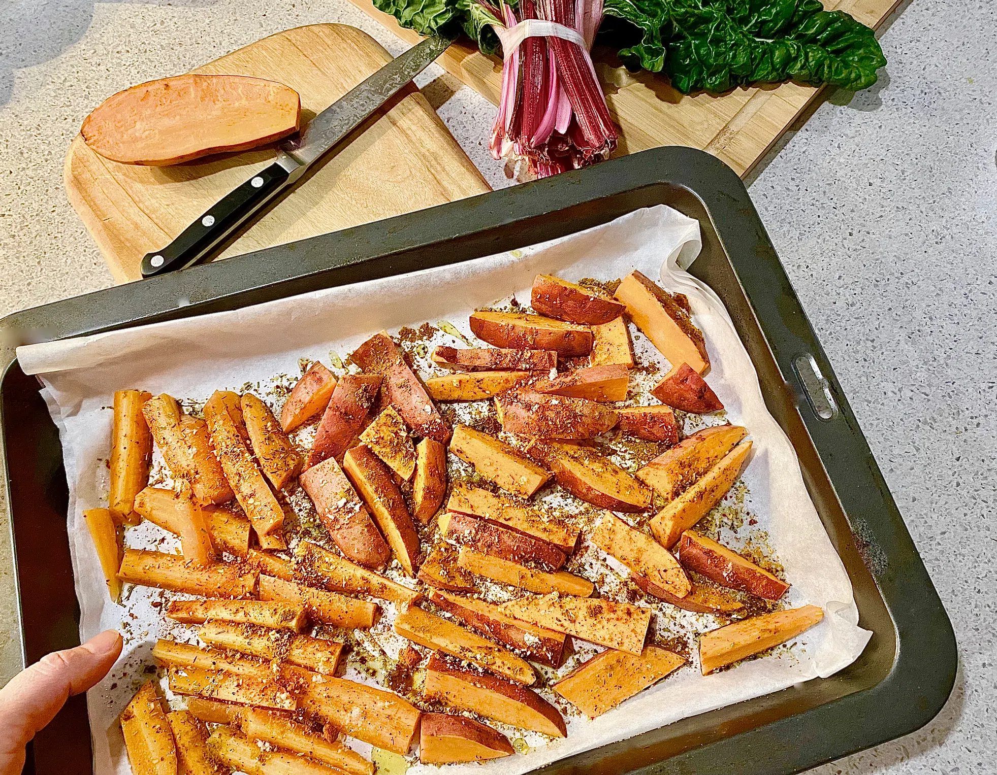 Preheat your oven to 450°F. In a large bowl, combine the first six ingredients and toss the steak fries to coat evenly. - Bake the Fries