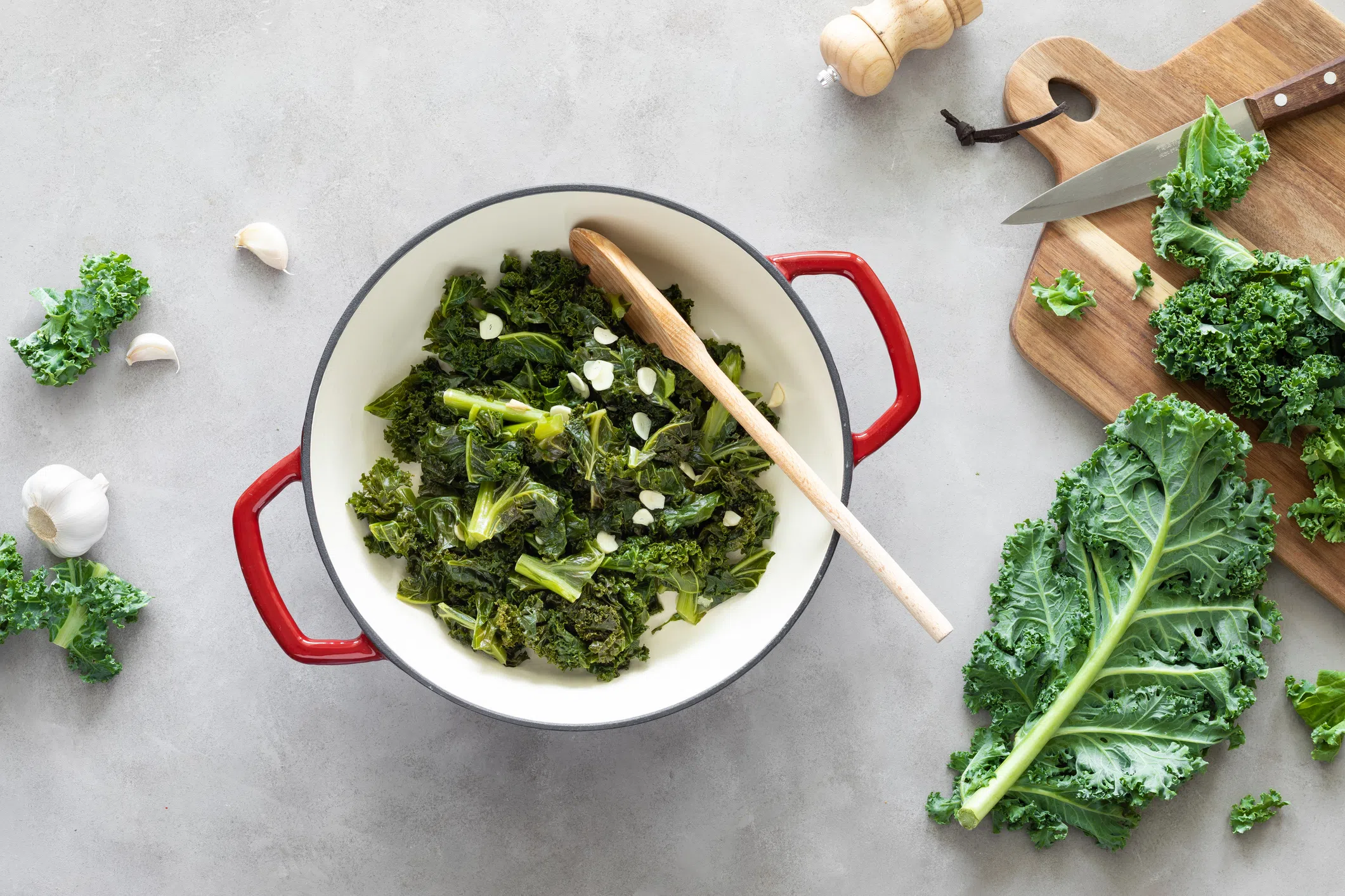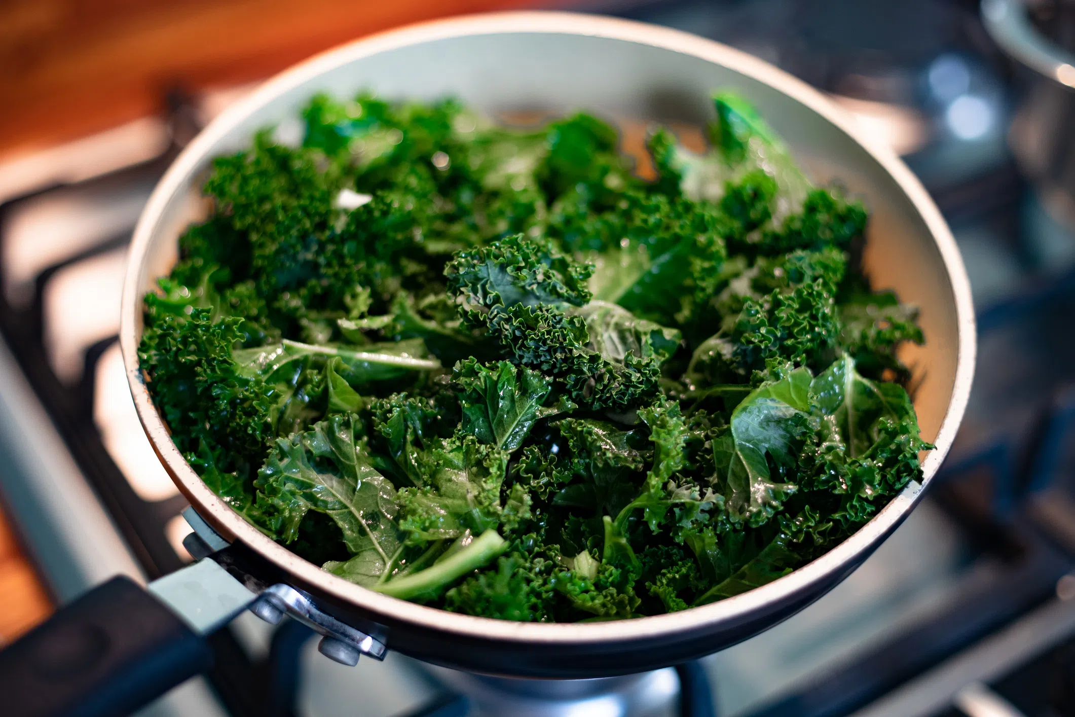 - Toss occasionally and cook for 7–8 minutes until the kale is bright green, soft, and wilted.