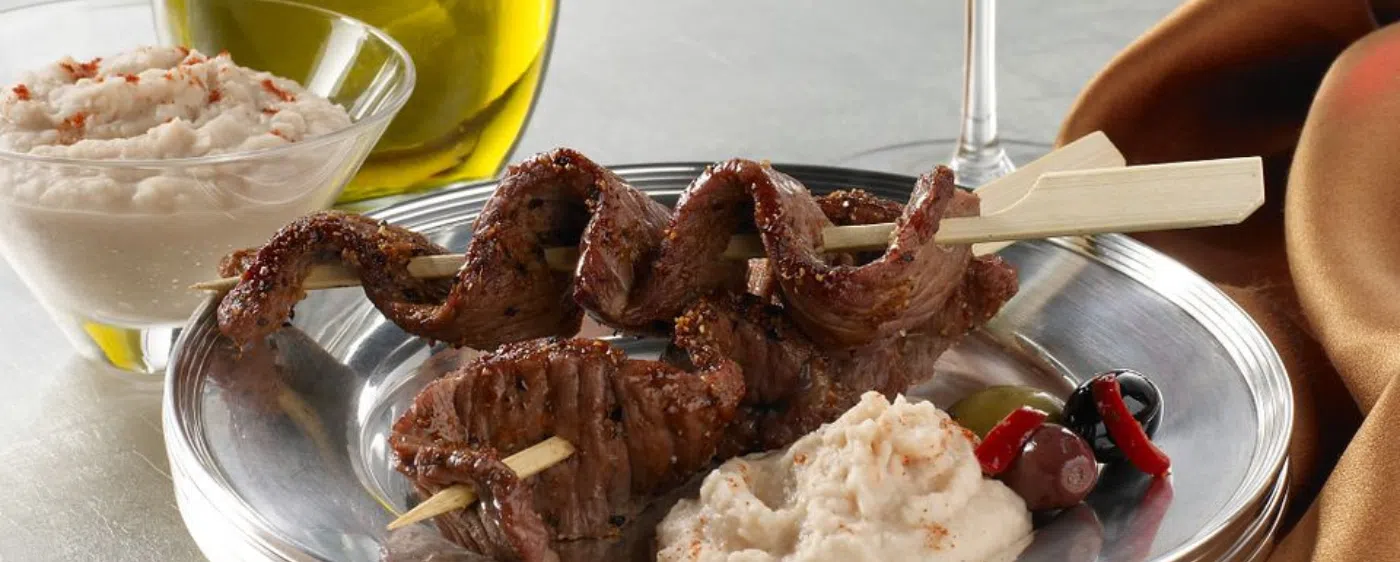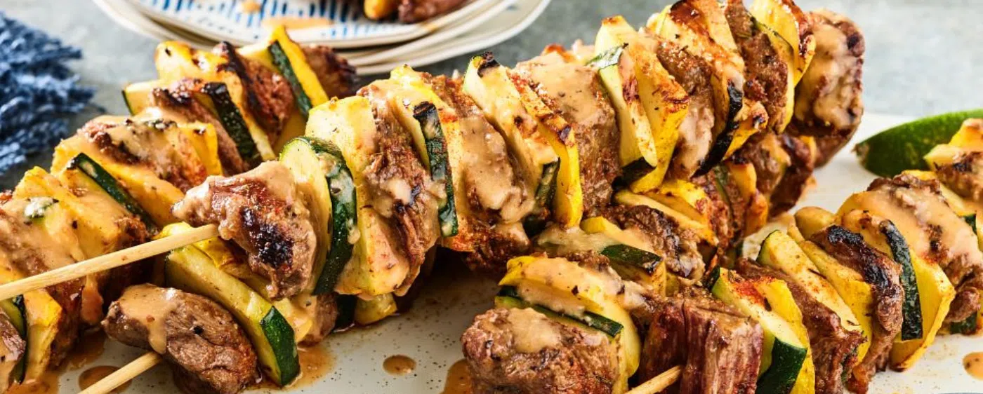 Beef Skewers with Garlicky White Bean Dip Photo Courtesy of BeefItsWhatsForDinner.com Beef Skewers with Garlicky White Bean Dip Recipe from Beef It's What's For Dinner Prep time: 15 minutes Cooking ti...