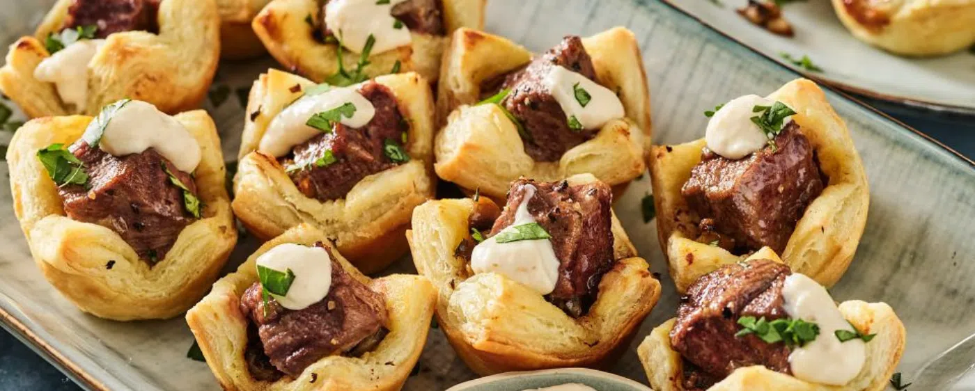 Mini Beef Wellingtons Photo Courtesy of BeefItsWhatsForDinner.com Mini Beef Wellingtons Recipe from Beef It's What's For Dinner Prep time: 10 minutes Cooking time: 10-12 minutes Serving size: 12 servi...