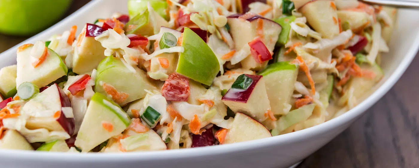 Apple Coleslaw RecipePhoto by Getty ImagesPrep time: 30 minutesCooking time: n/aServing size: 6 servingsIngredients3 cups chopped cabbage1 red apple, peeled and chopped1 green apple, peeled and choppe...